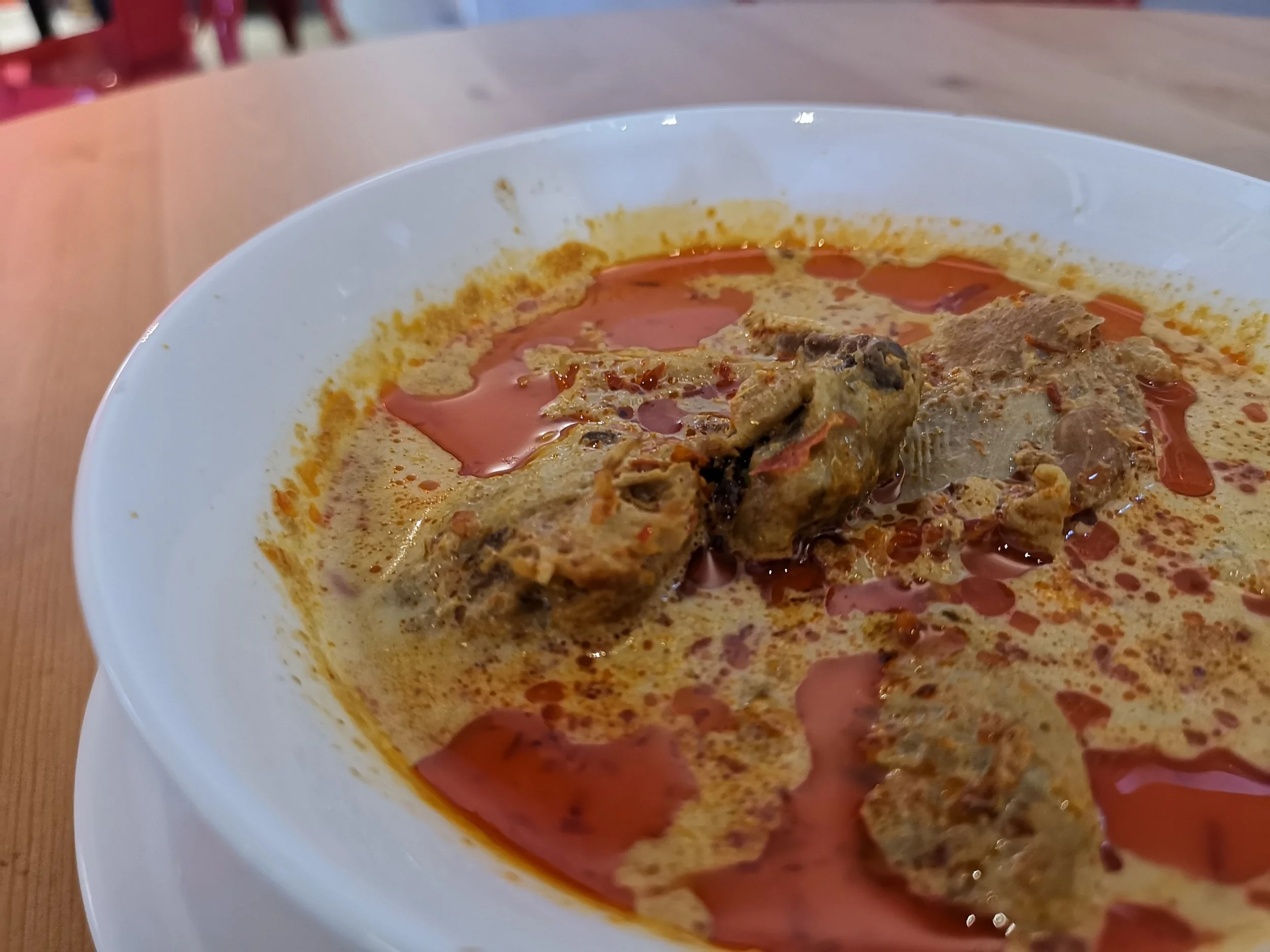 I went there with my girlfriend, and we got 2 mains, a toast and a drink to share. We had a curry chicken rice, a nasi lemak and a kaya toast coupled with 2 drinks.